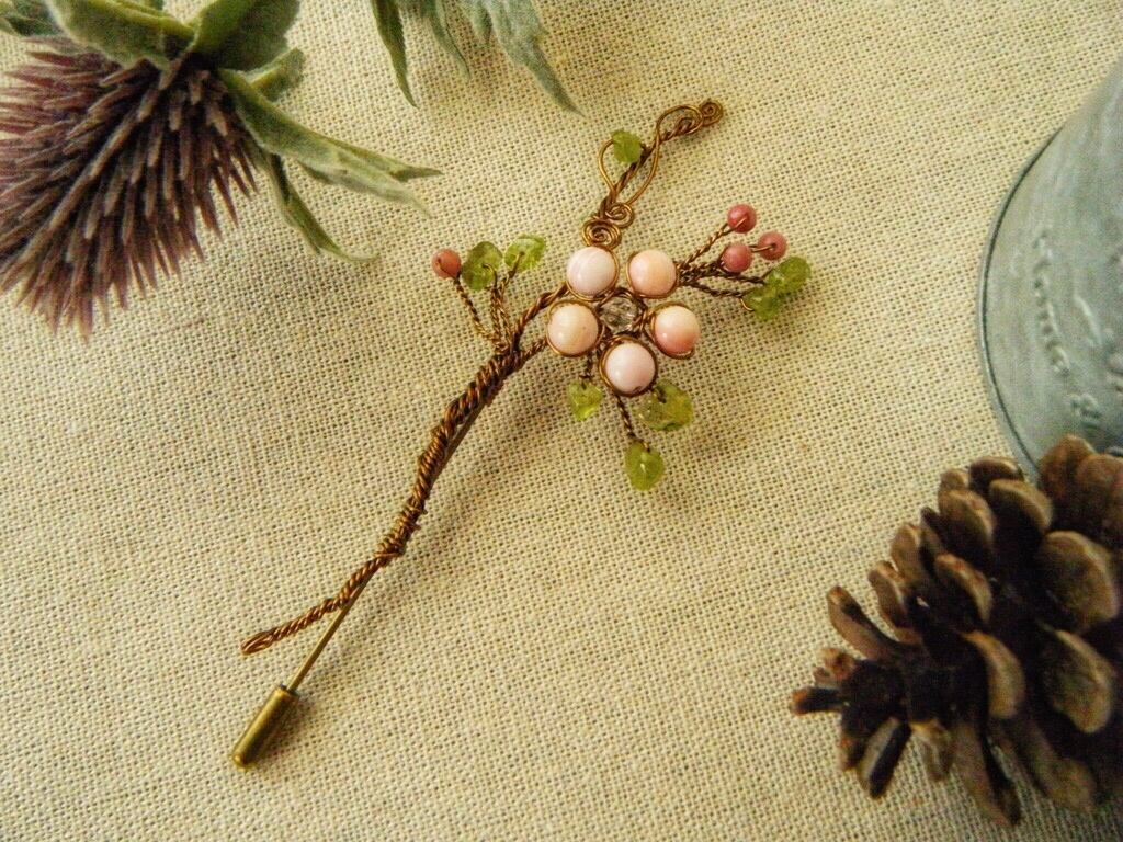 可憐に咲く桜の小枝をモチーフにしたコサージュピンです。バッグや帽子に付けるのもオススメです♪