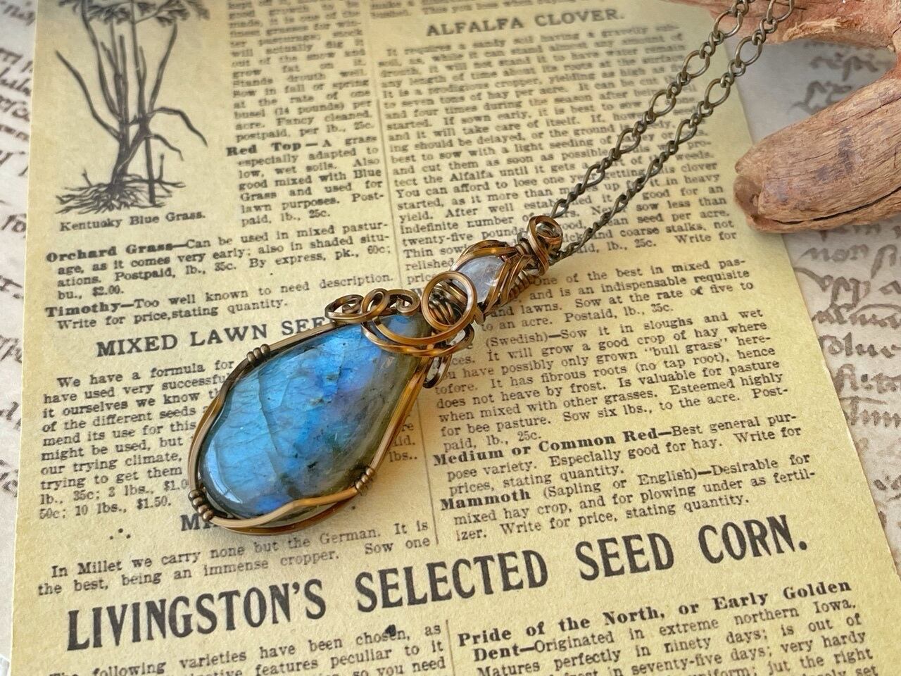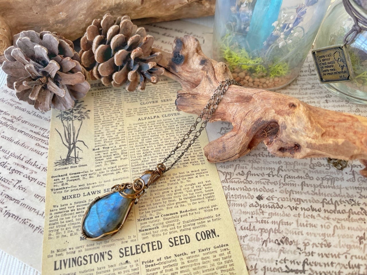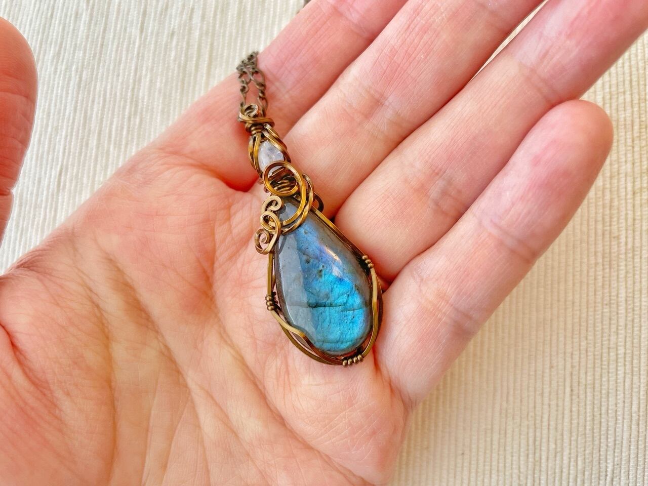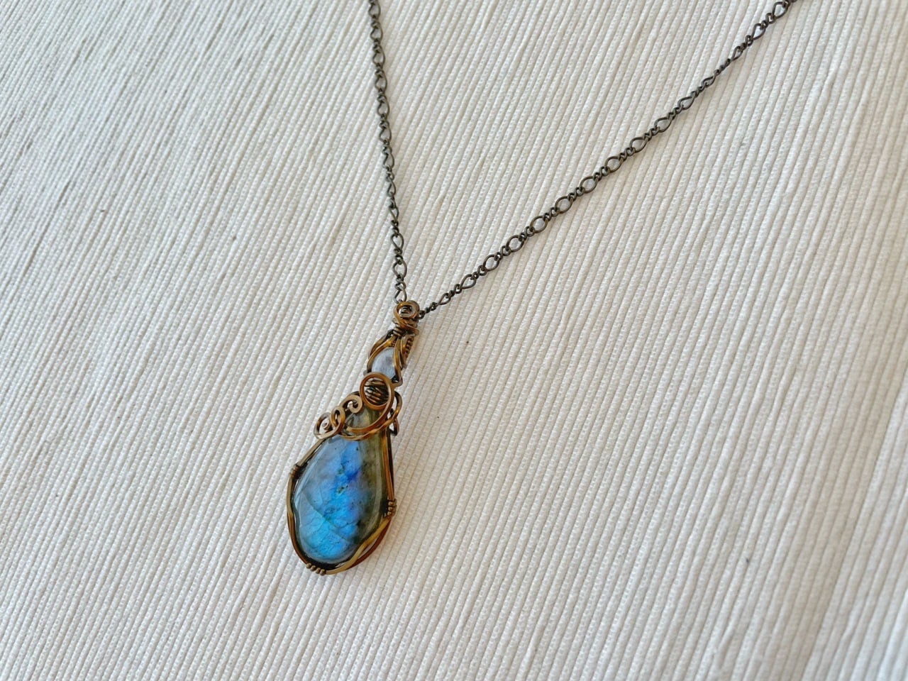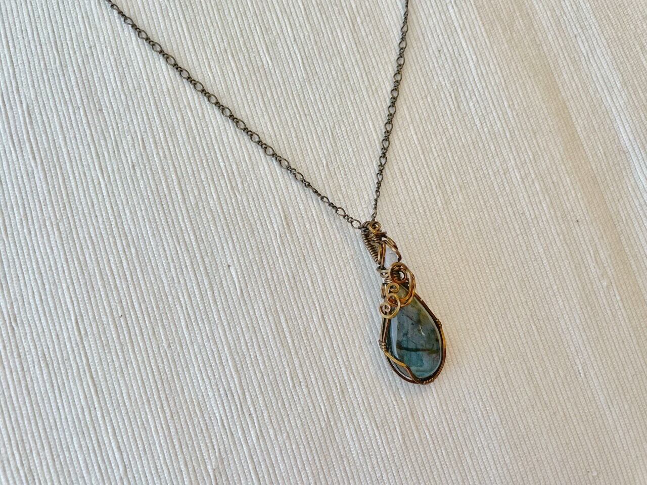 ラブラドライトとムーンストーンのワイヤーペンダント