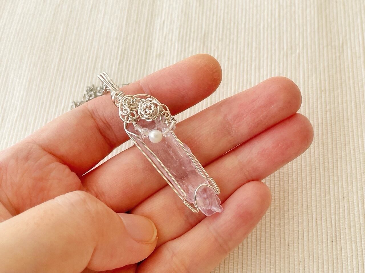 使用石:クンツァイト、淡水パール、水晶
