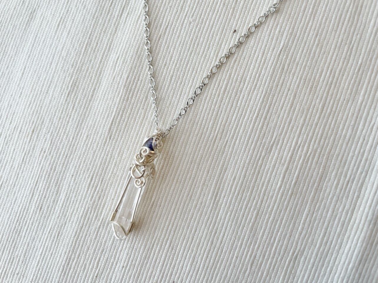 水晶ポイントxアイオライトのワイヤーペンダント