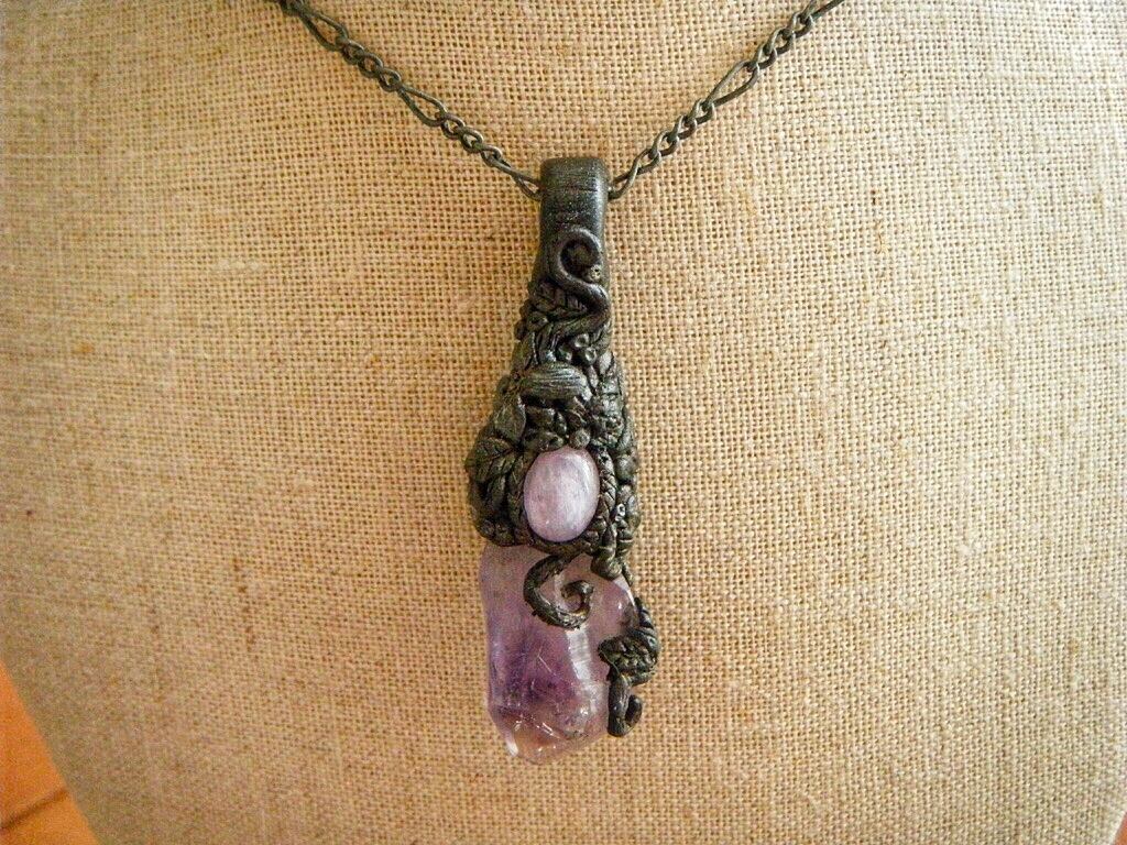 アメジストの原石にクンツァイトのカボションを組み合わせたペンダントです。思わず冒険の旅に出たくなりそう!?ズシリとした存在感のある一品です。