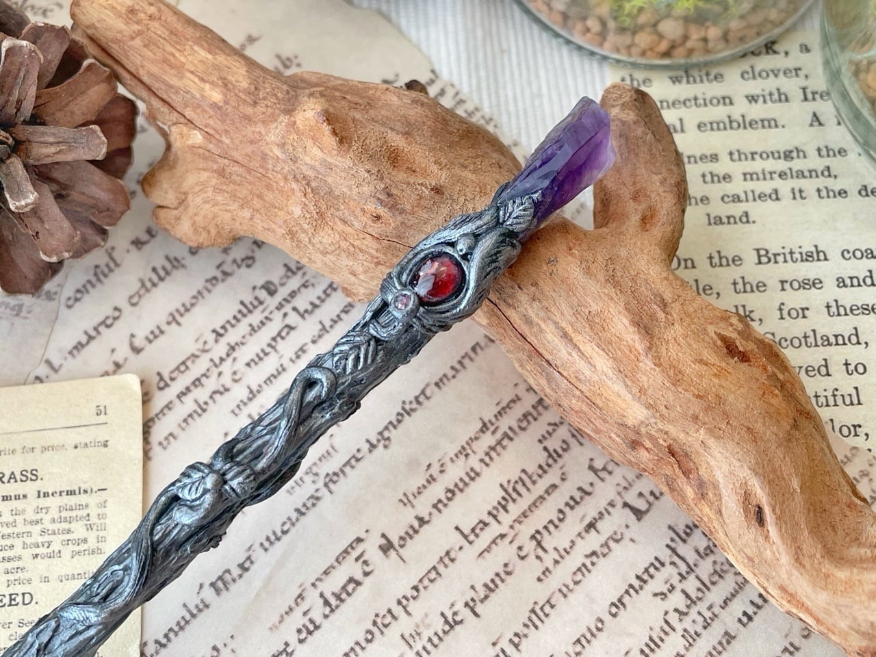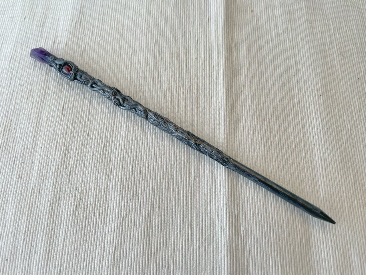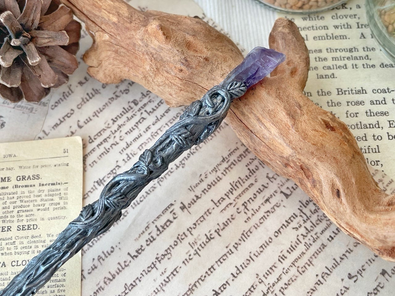 紫色の石全般は「霊性を高める石」とされており、このアメジストもその一つです。直感力や創造力を豊かにする効果があり、悪いものから身を守るお守りにもなります。恋愛系のお守りとしても評判が高く、恋人や伴侶との絆を深める効果や、持つ人に官能的な魅力を与える効果があるともいわれています。牡羊座・射手座・水瓶座・魚座の守護石でもあります。