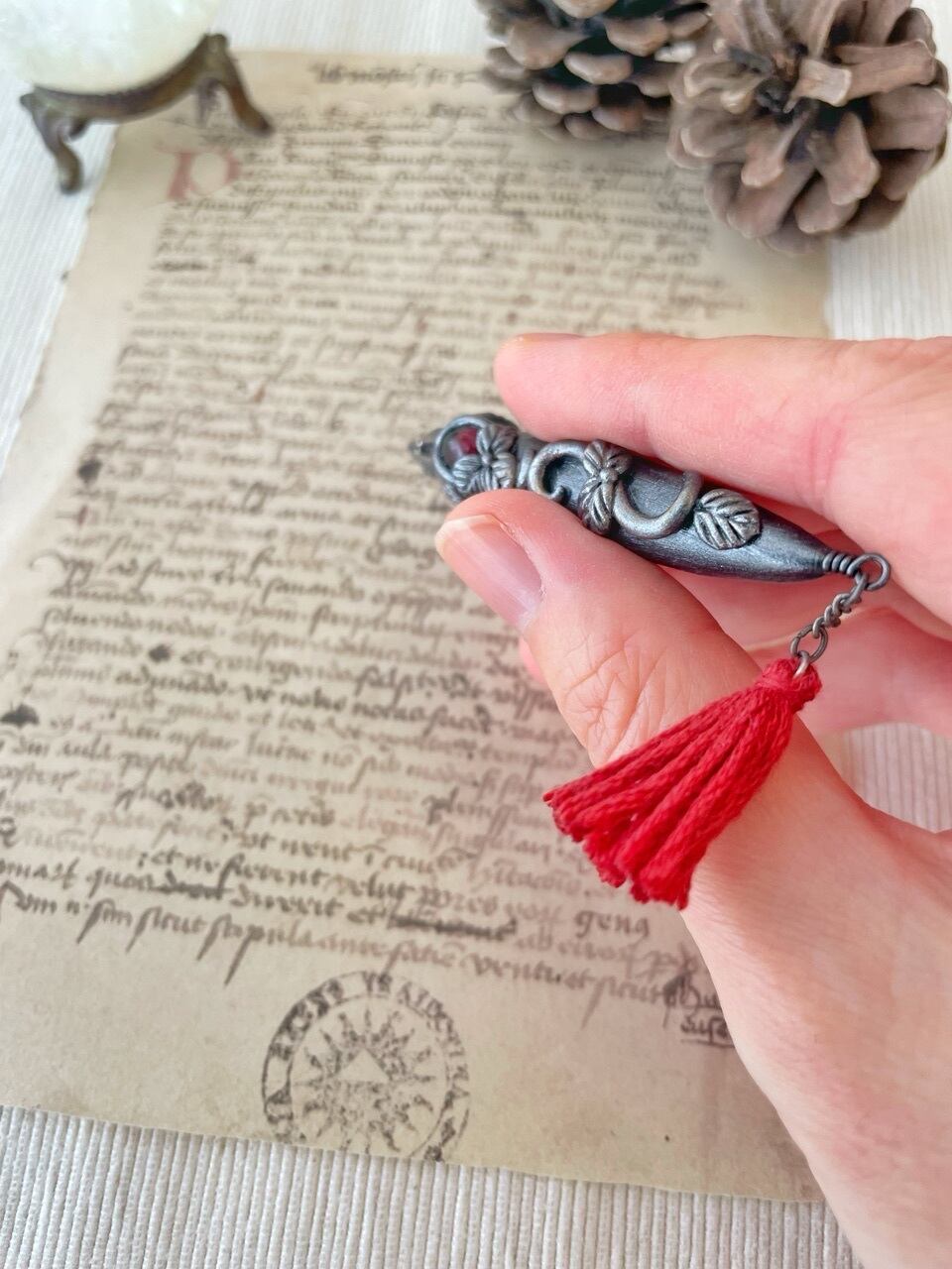 古代文明や伝説が記された古文書、装備すると不思議な力を発揮する護符・・・小さな頃に夢中になったファンタジー世界のアイテム達を再現してみました。手に取って秘密の呪文を唱えると何かが起きる・・・かもしれません。