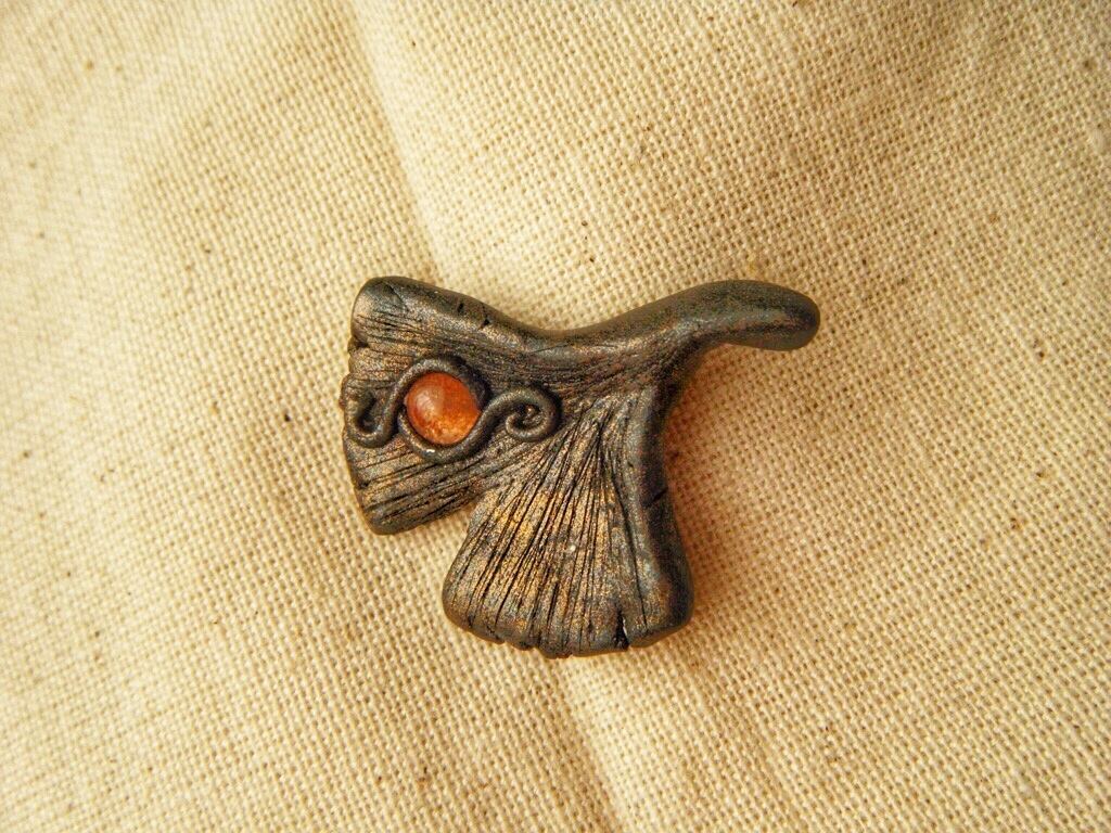 【サンストーン】銀杏のブローチ