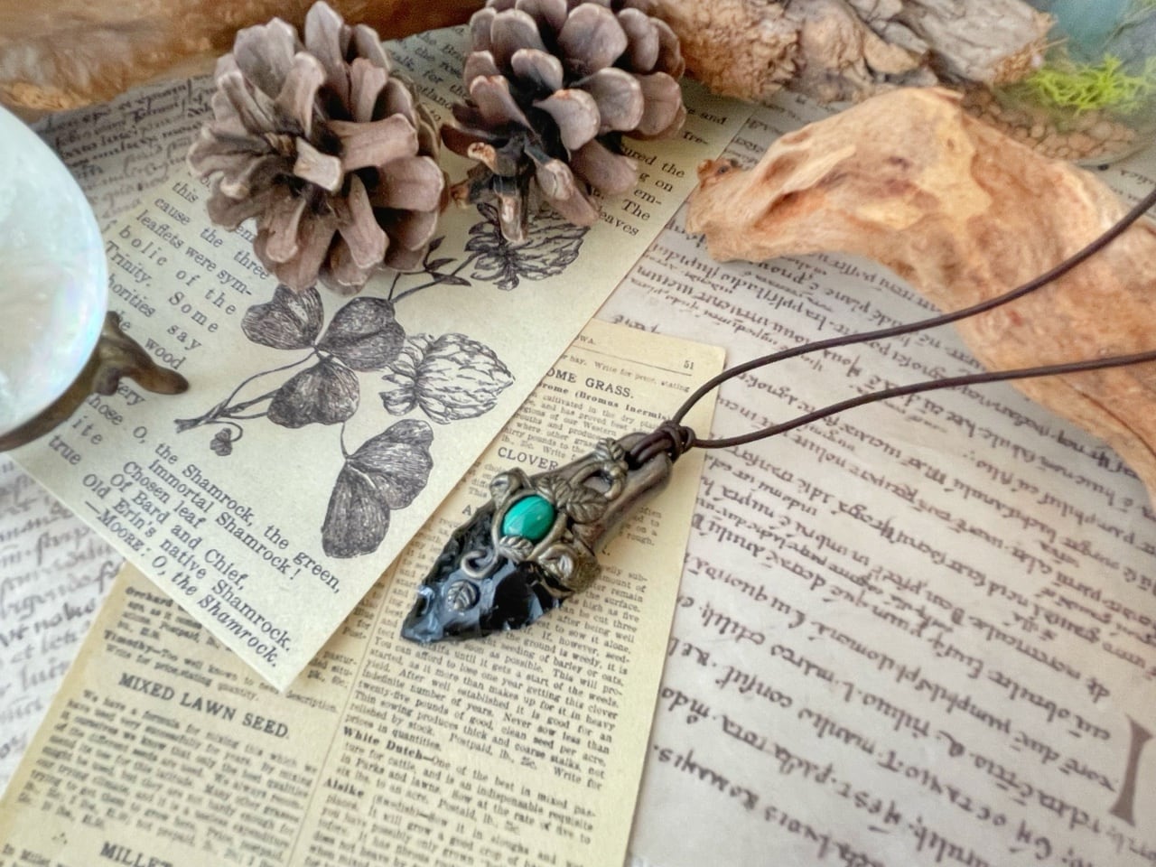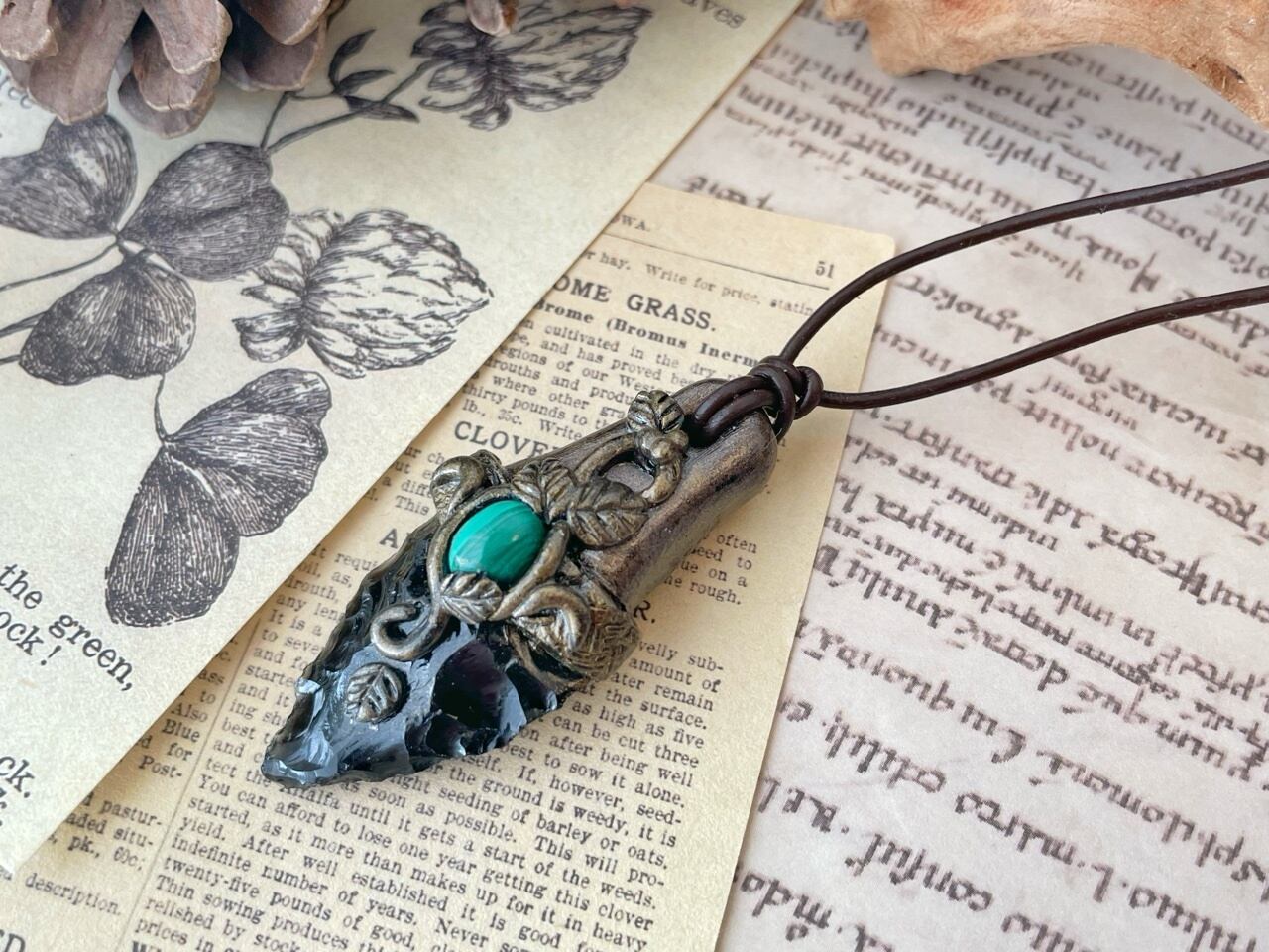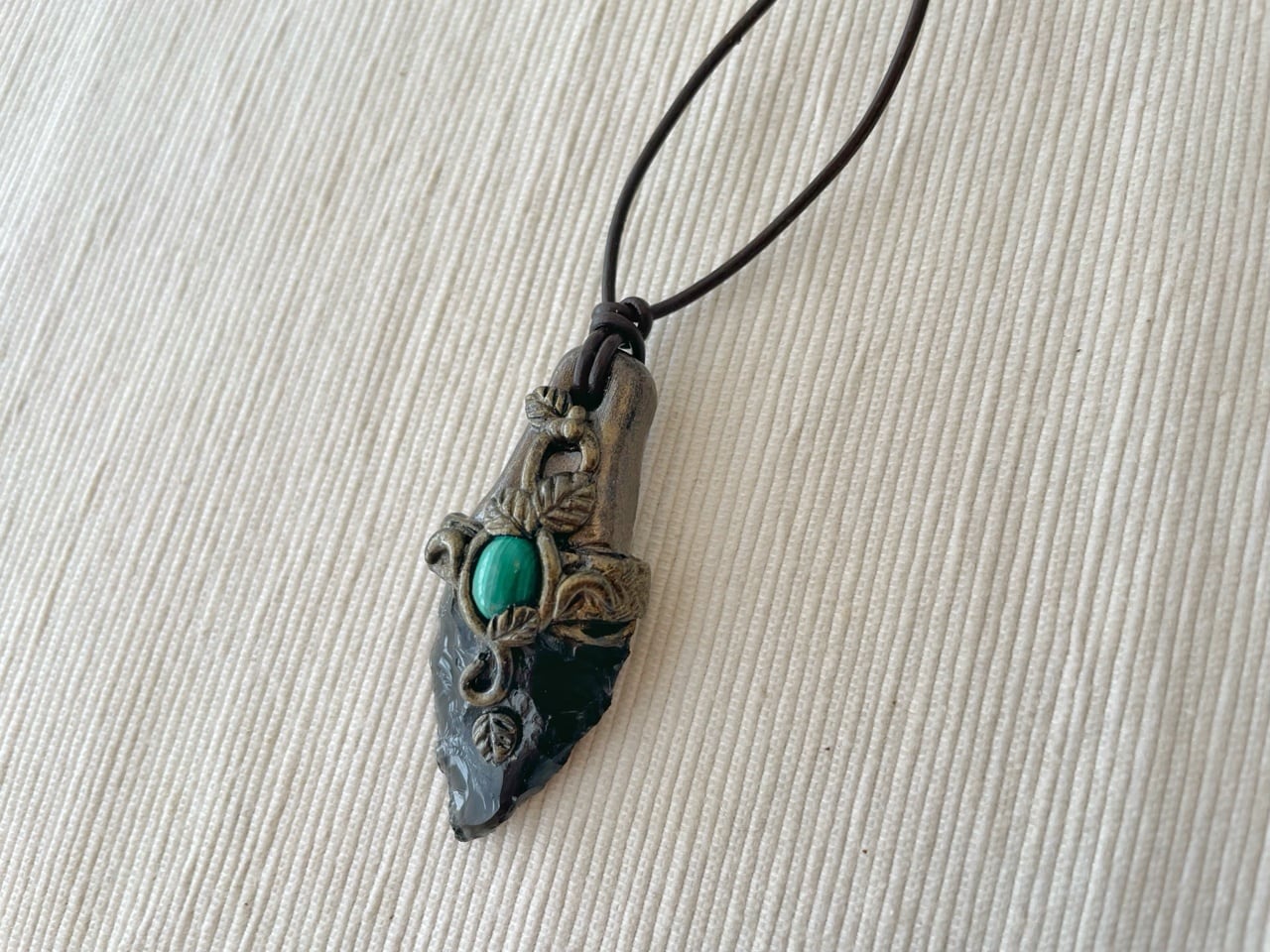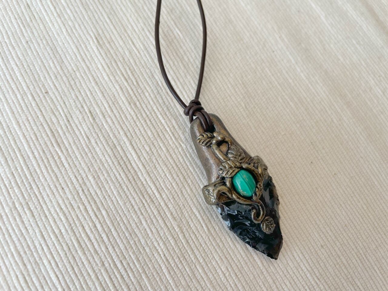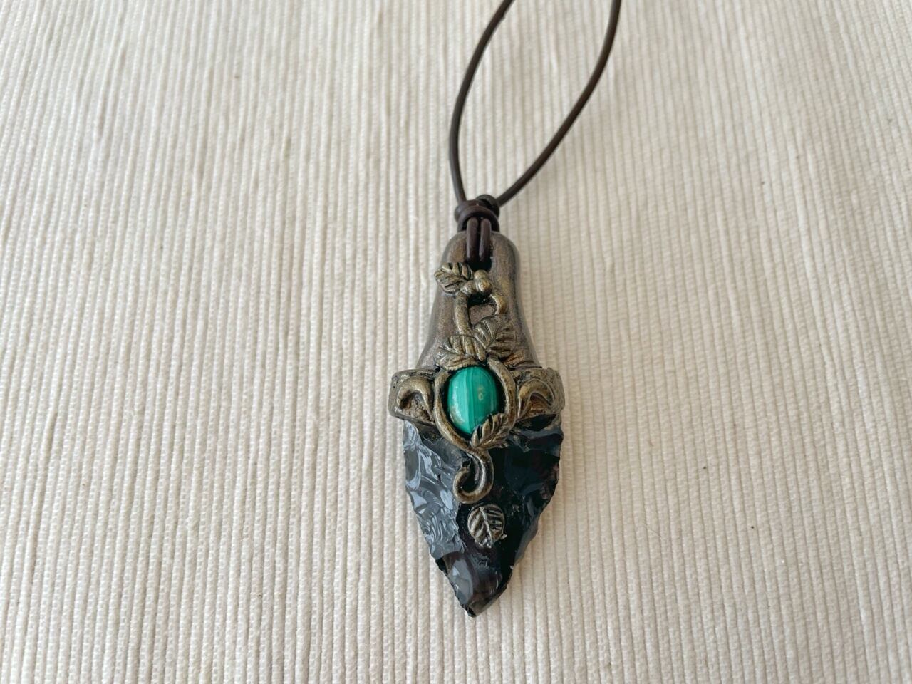 【オブシディアンxマラカイト】魔封じのナイフペンダント