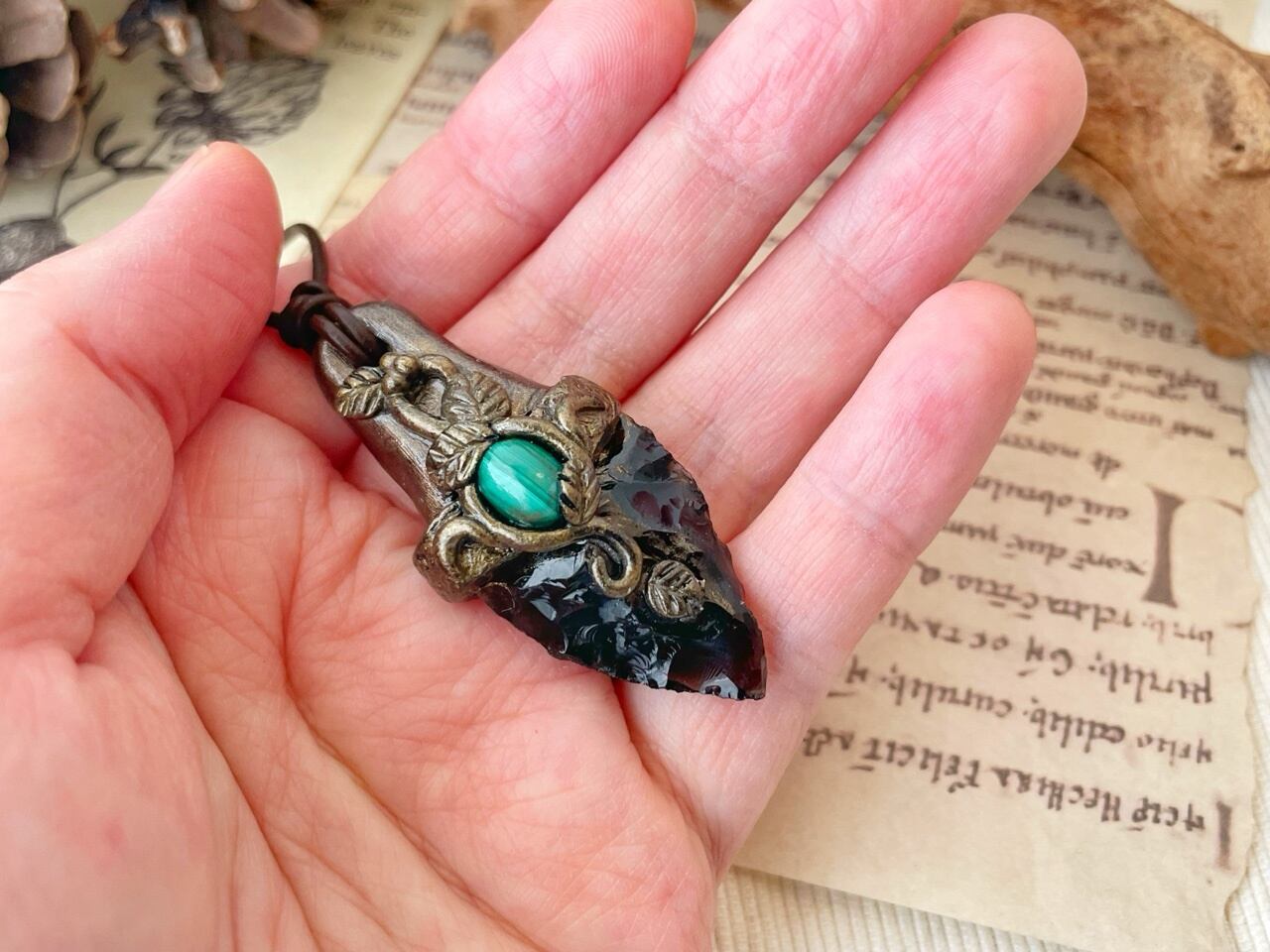 古代文明や伝説が記された古文書、装備すると不思議な力を発揮する護符・・・小さな頃に夢中になったファンタジー世界のアイテム達を、ポリマークレイと天然石で再現してみました。手に取って秘密の呪文を唱えると何かが起きる・・・かもしれません。