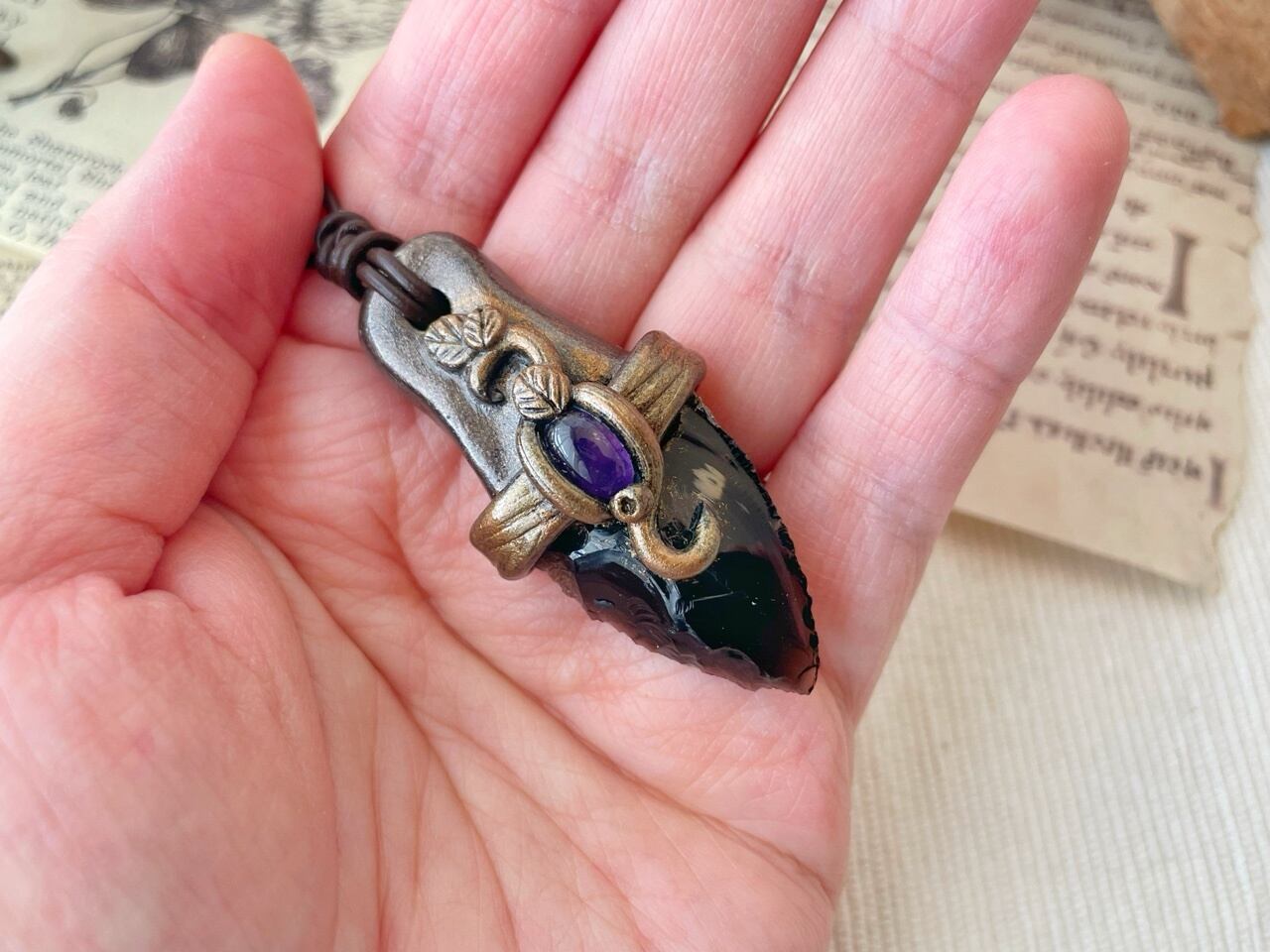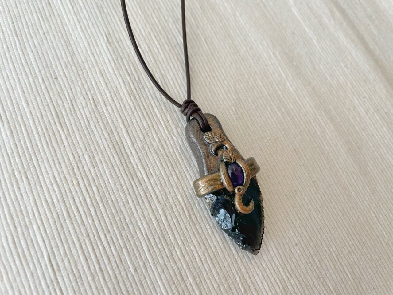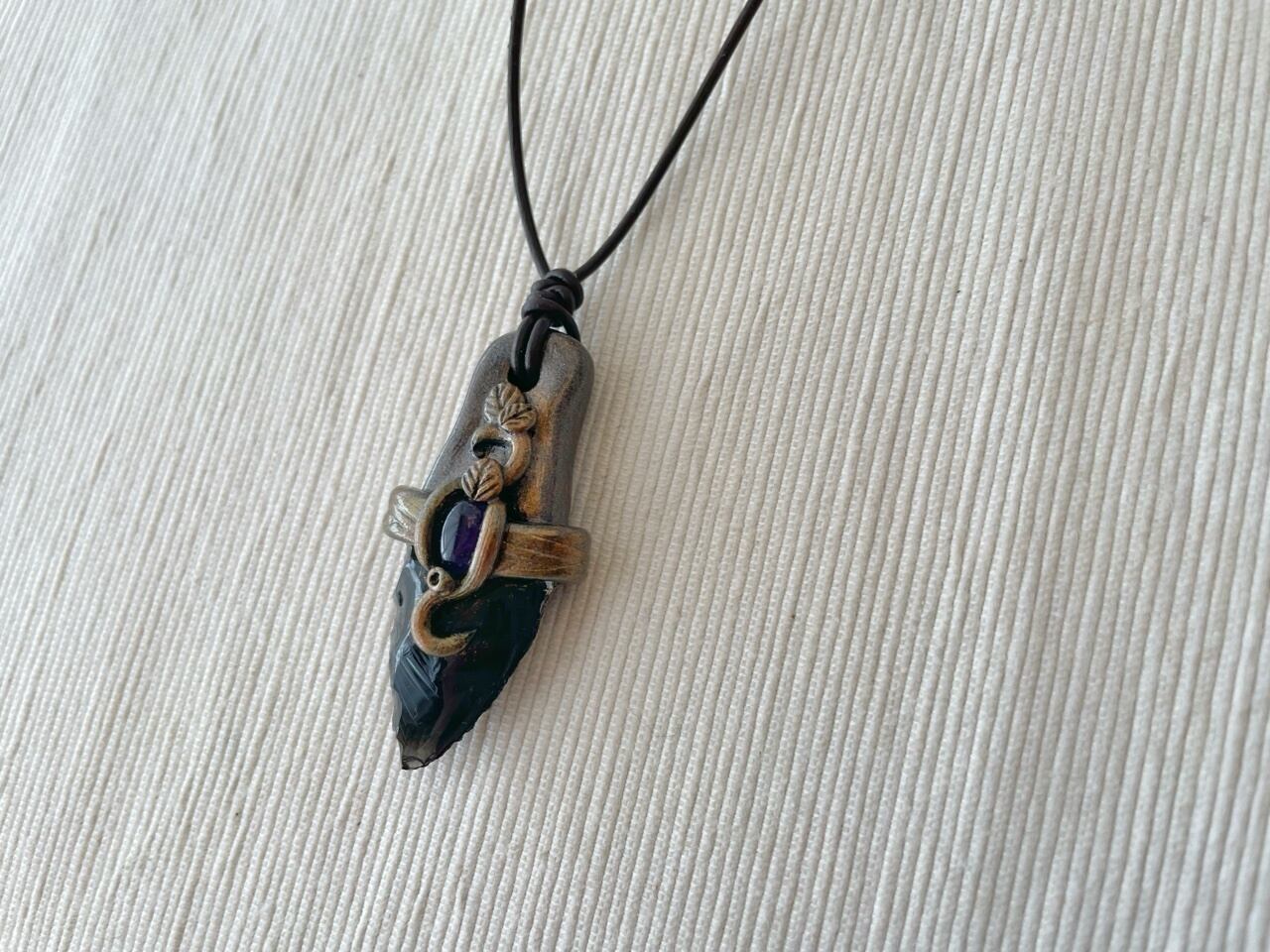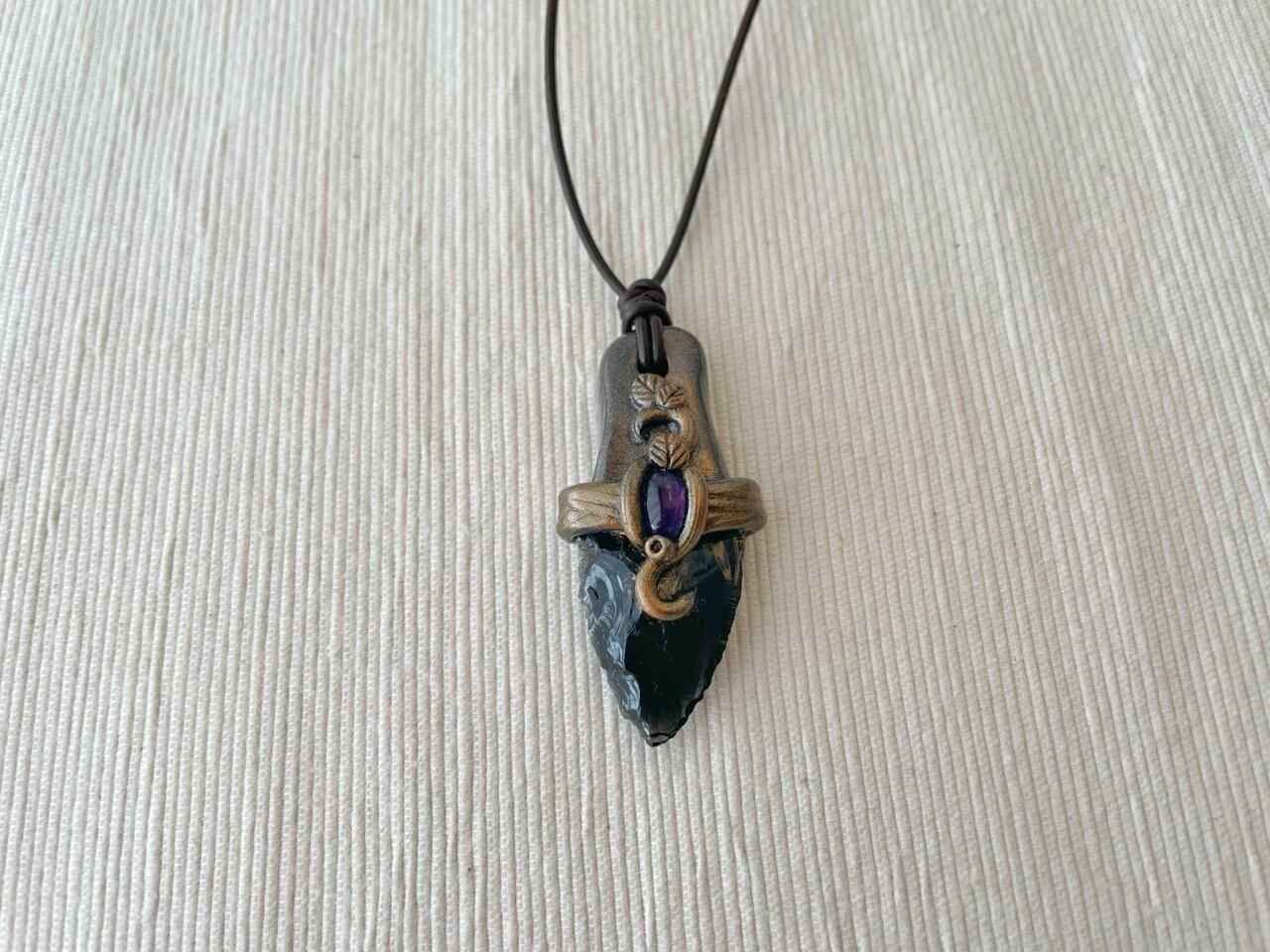 【オブシディアンxアメジスト】魔封じのナイフペンダント