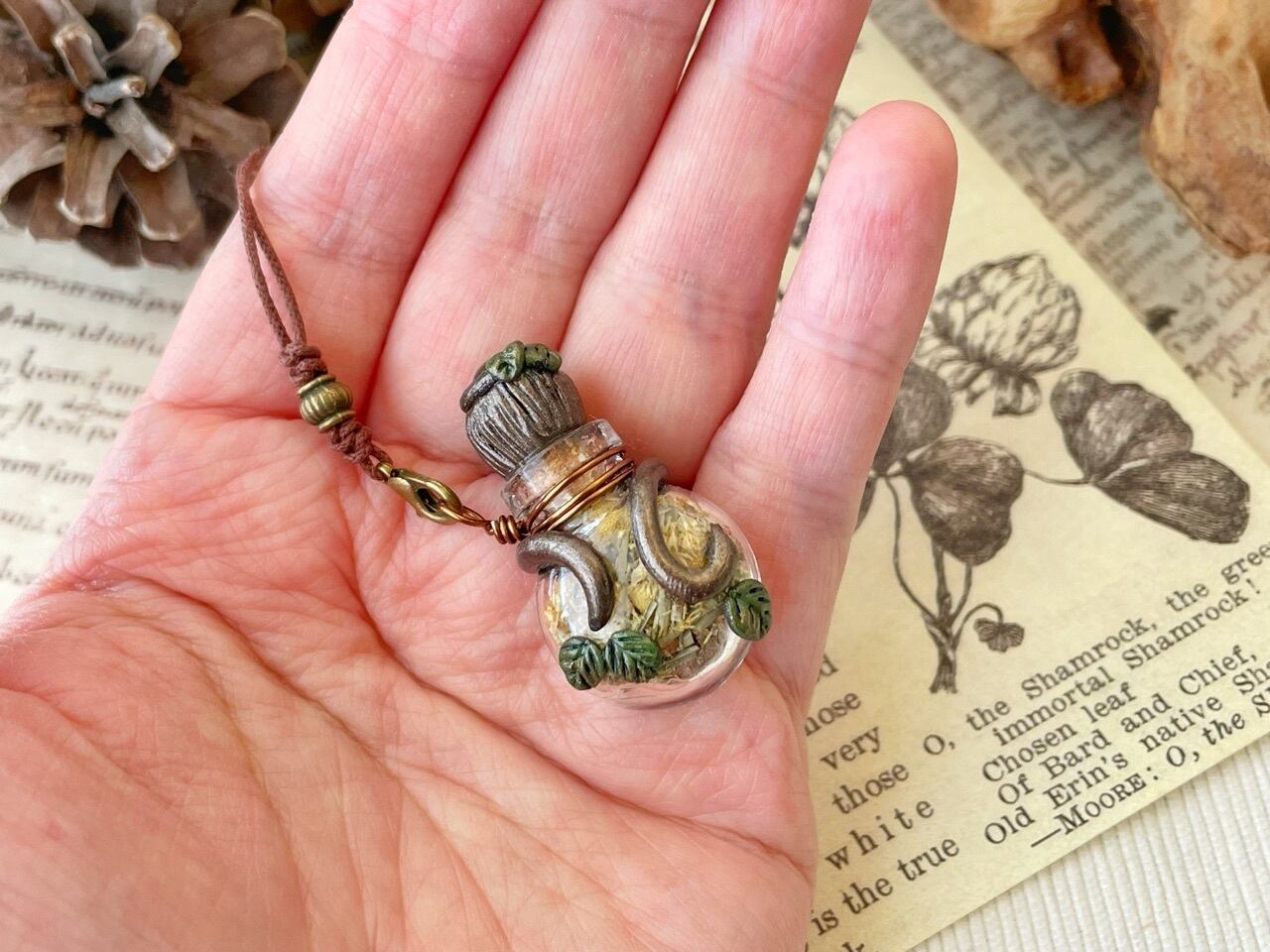 働き者でちょっといたずら好きの森の妖精さんが調合した薬草を瓶詰めにしてみました。