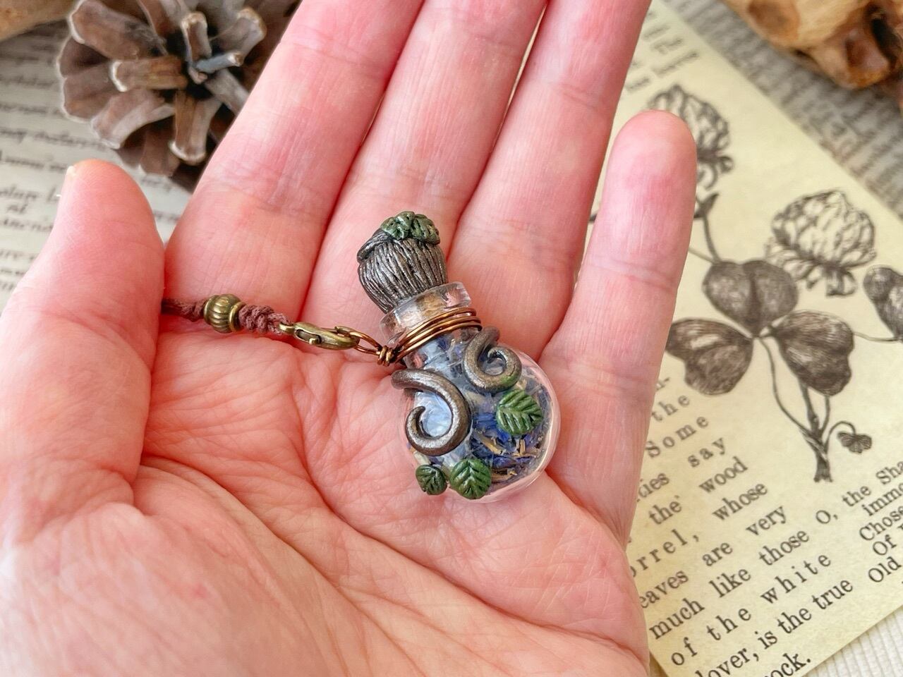 働き者でちょっといたずら好きの森の妖精さんが調合した薬草を瓶詰めにしてみました。