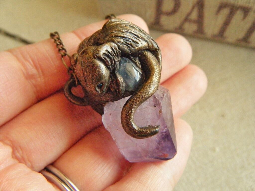 【ラブラドライトxアメジスト】竜のお守りペンダント