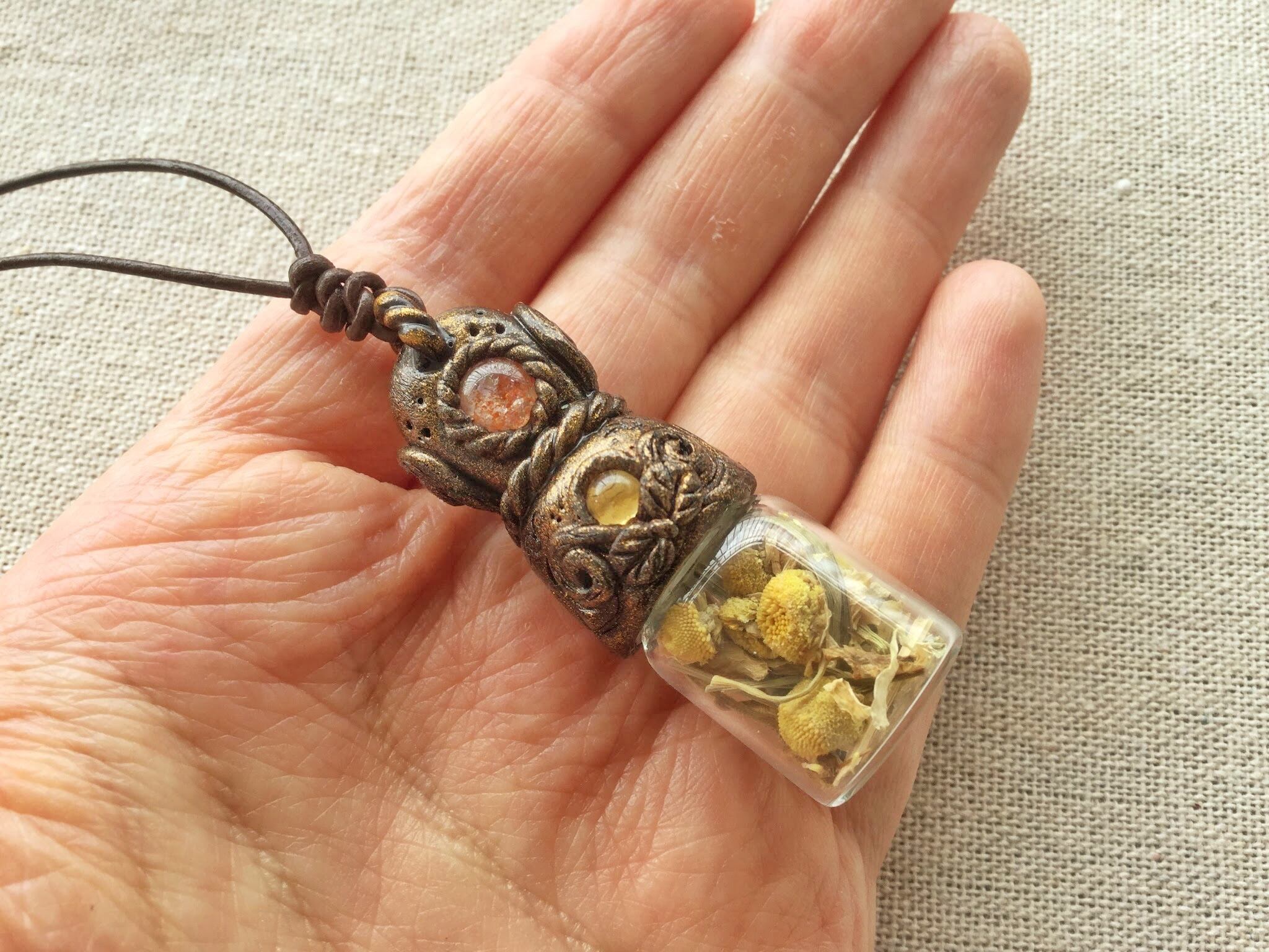 【特別価格】【森の薬屋さん】ハーブの薬瓶ペンダント【サンストーンxシトリン】