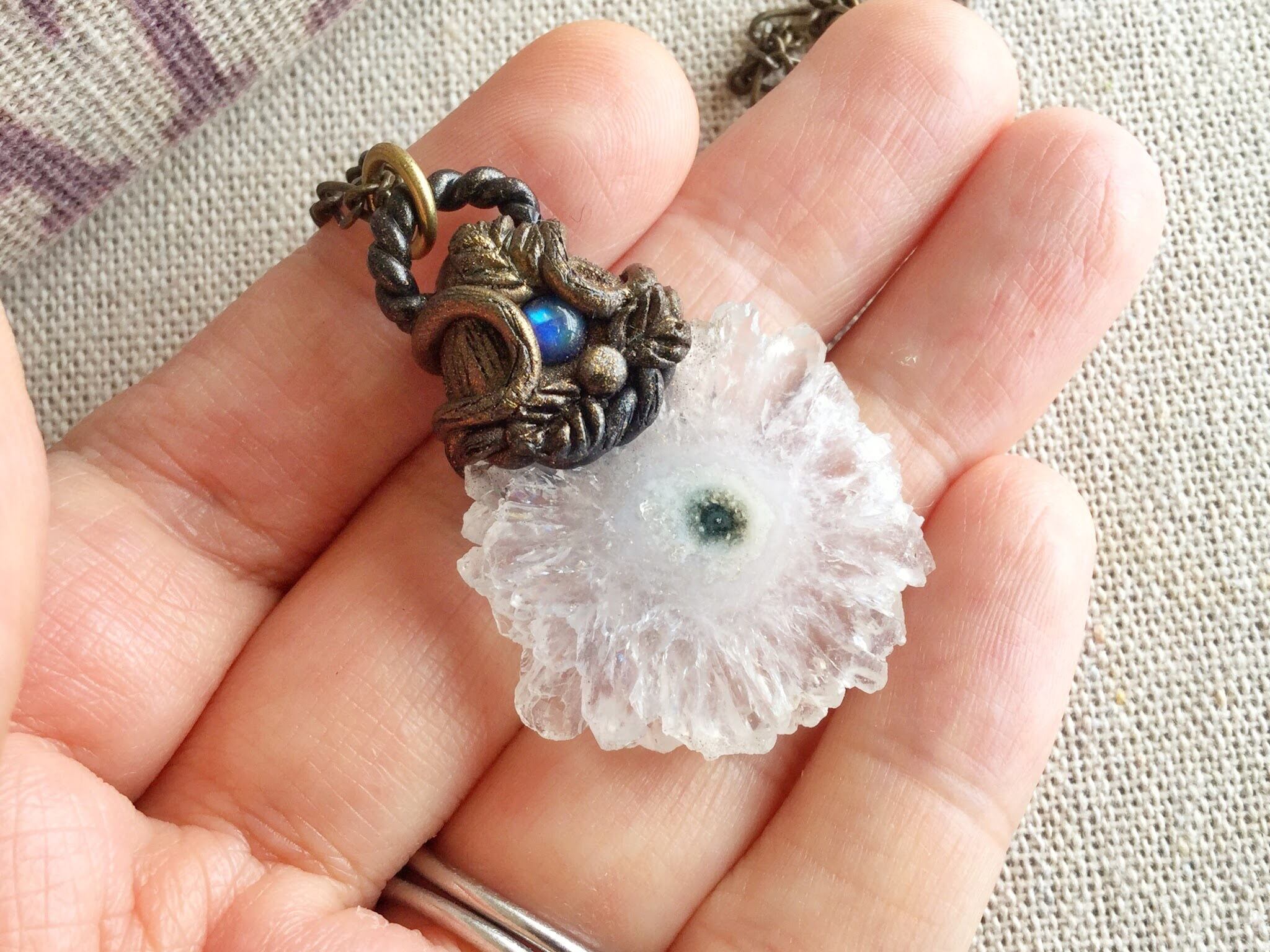 アゲート(瑪瑙)を中心に水晶の小さな結晶が放射状に伸びたその姿が太陽のようであることからその名がついた「ソーラークォーツ」は流通量が少なく、まだまだ謎の多いクリスタルです。