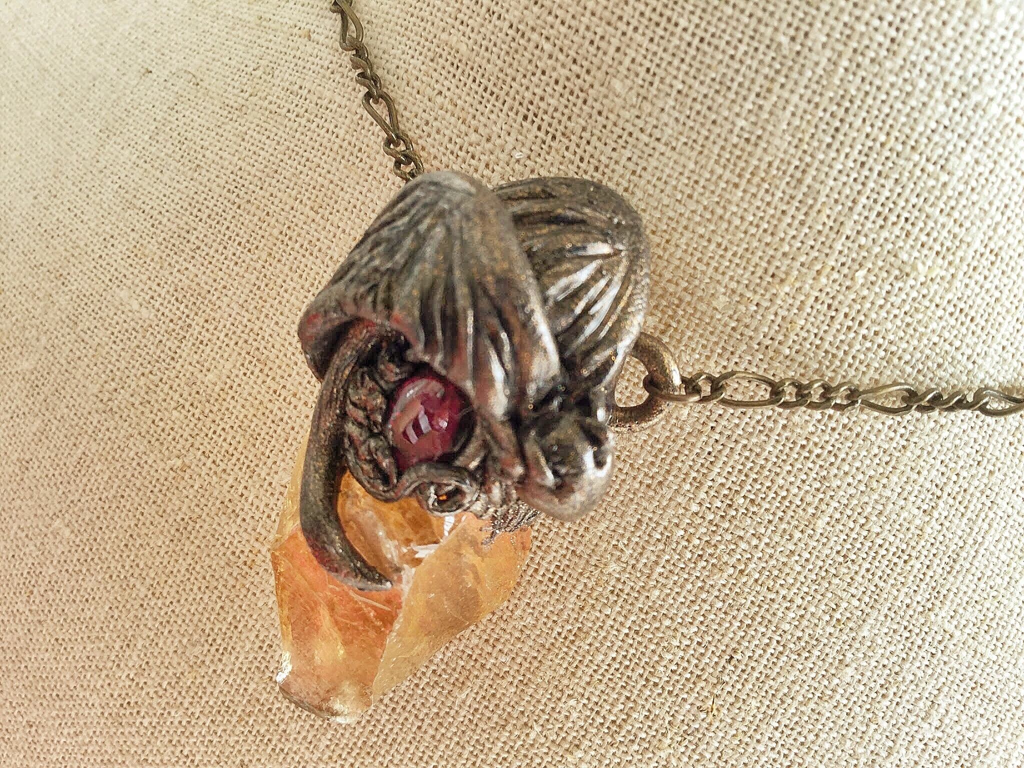 【ゴールデンカルサイトxガーネット】竜のお守りペンダント