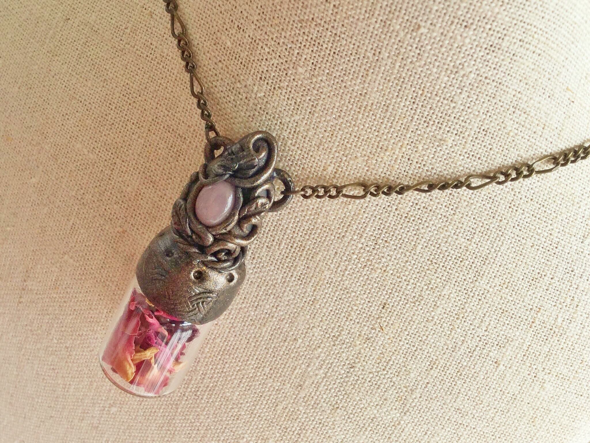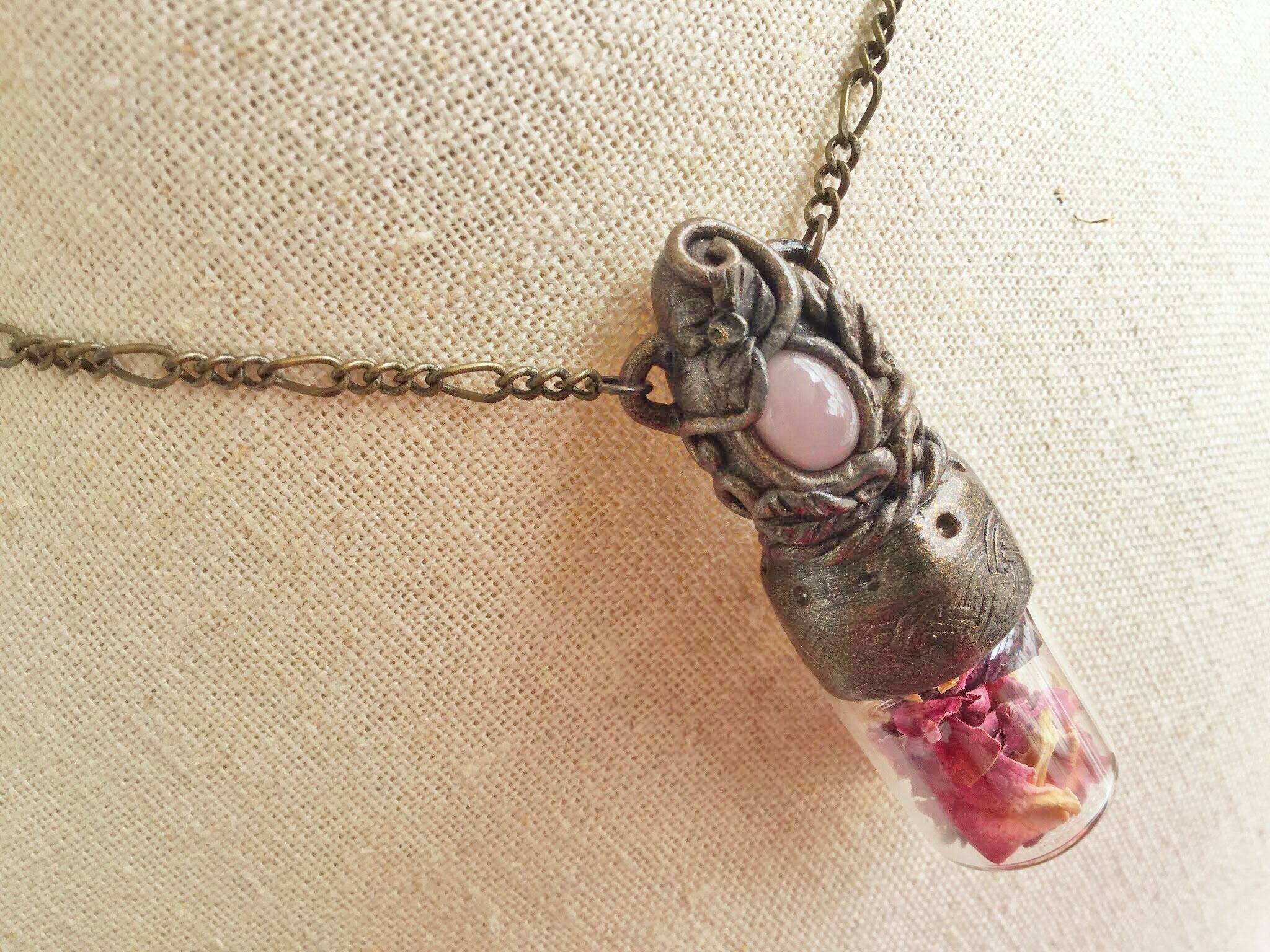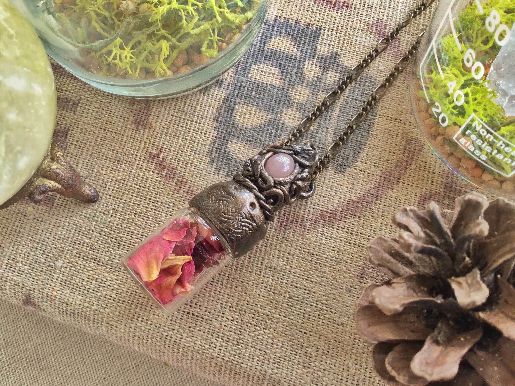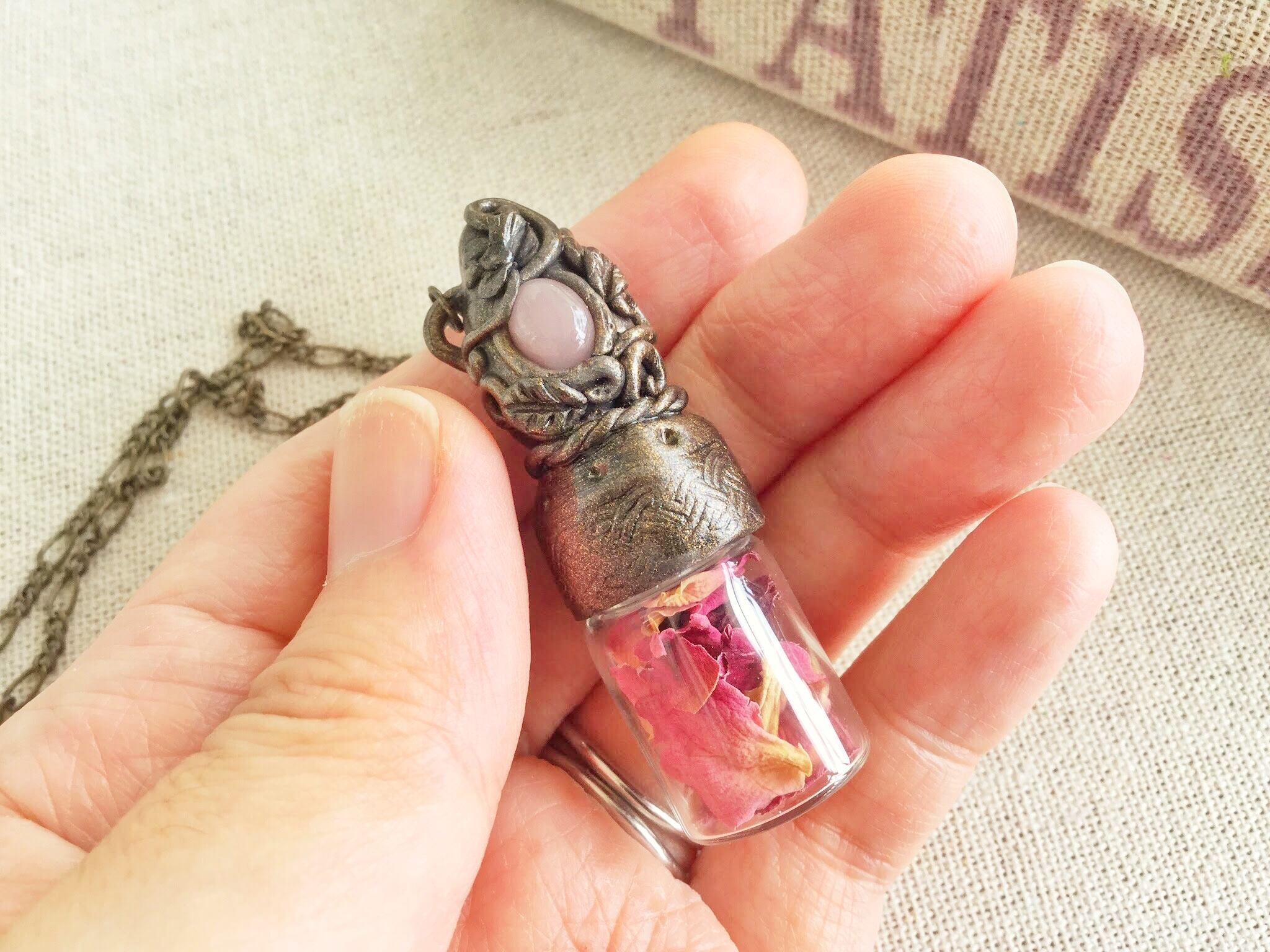 【森の薬屋さん】ハーブの薬瓶ペンダント【ピンククォーツ】