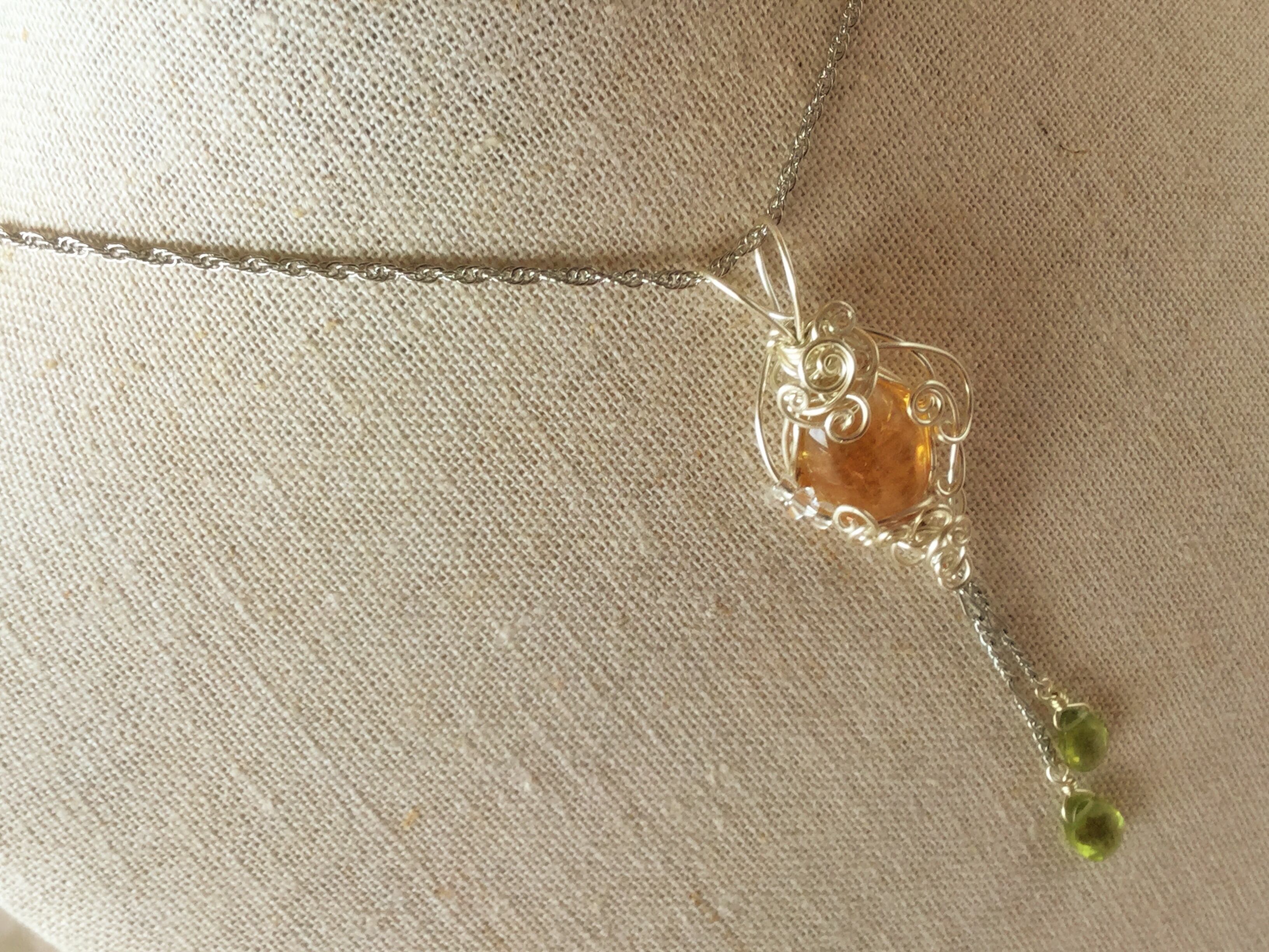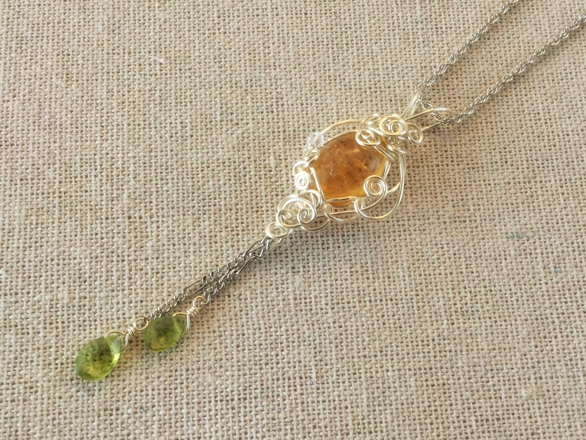黄色のシトリンと黄緑のペリドットを組み合わせた爽やかな色合いのペンダントです。