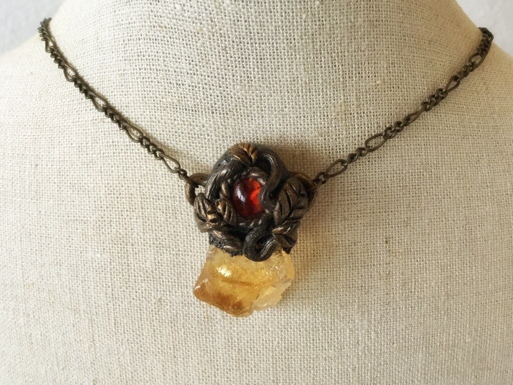 【ゴールデンカルサイトxガーネット】冒険者のお守りペンダント