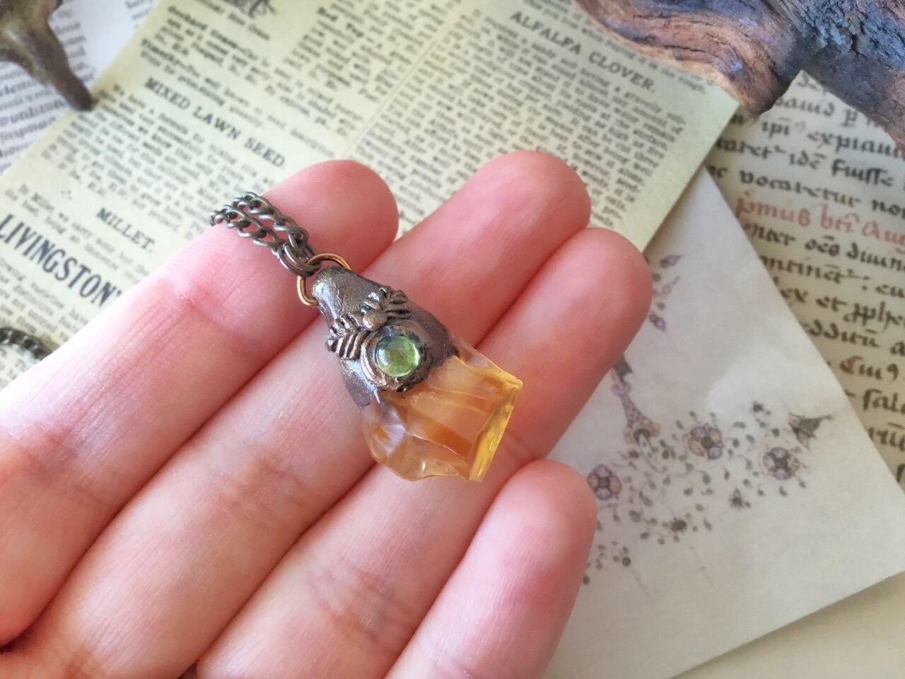 【ゴールデンカルサイトxペリドット】冒険者のお守りペンダント