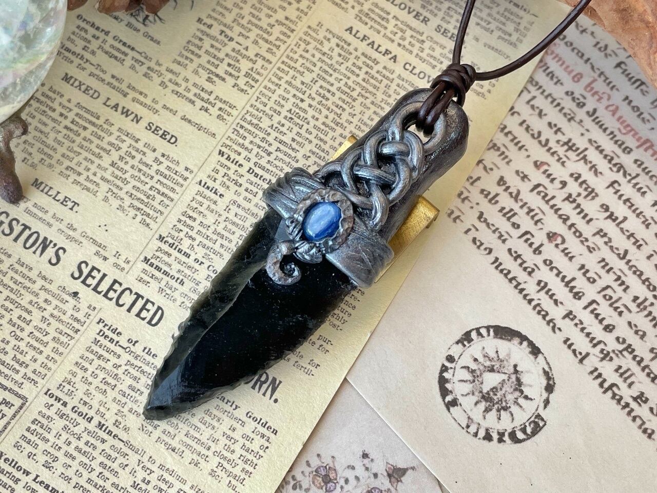 【オブシディアンxカイヤナイト】魔封じのナイフペンダント