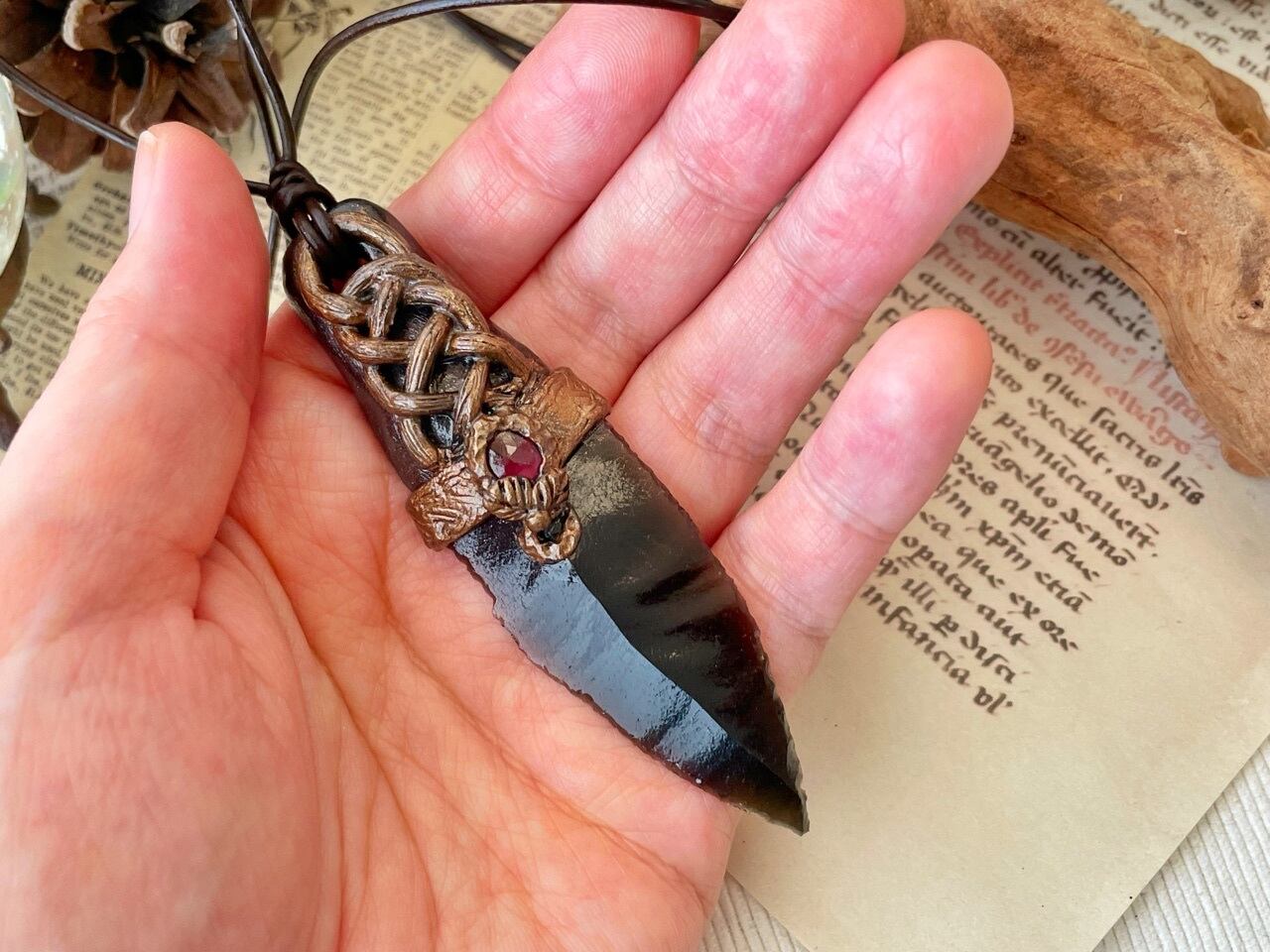 【オブシディアンxガーネット】魔封じのナイフペンダント