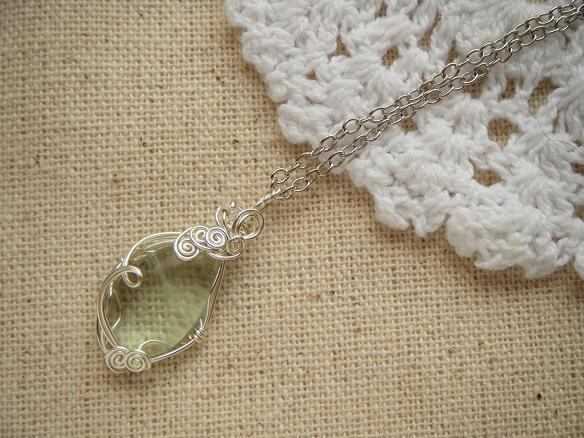 雨の一雫を思わせるグリーンフローライトをワイヤーで固定したペンダントです。