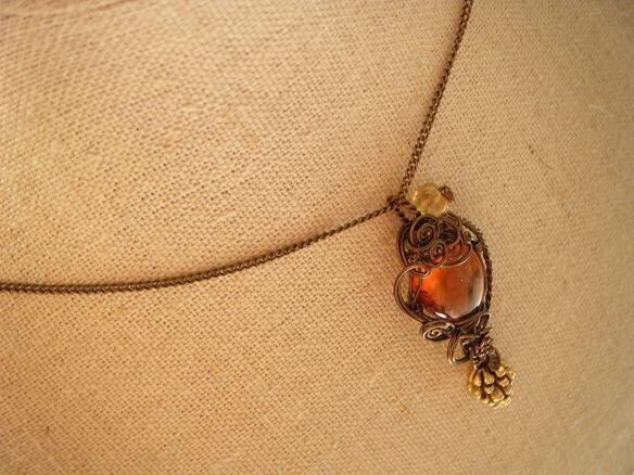 【松ぼっくり】秋色アンバーのワイヤーペンダント