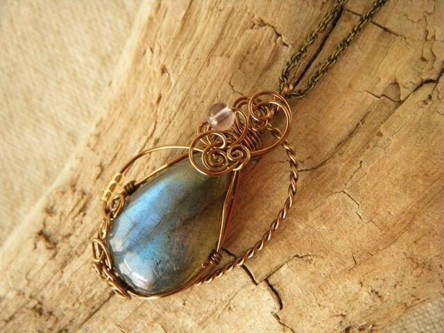 オーロラみたいなラブラドライトのワイヤーペンダント【金古美】