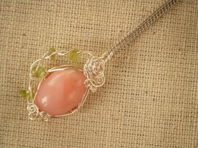 使用石:ピンクオパール(カボション)、ペリドット(ビーズ)