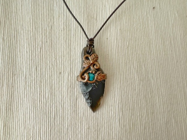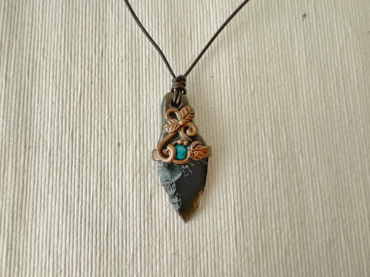 オブシディアンの鏃に装飾を施して小さなナイフに仕立てました。