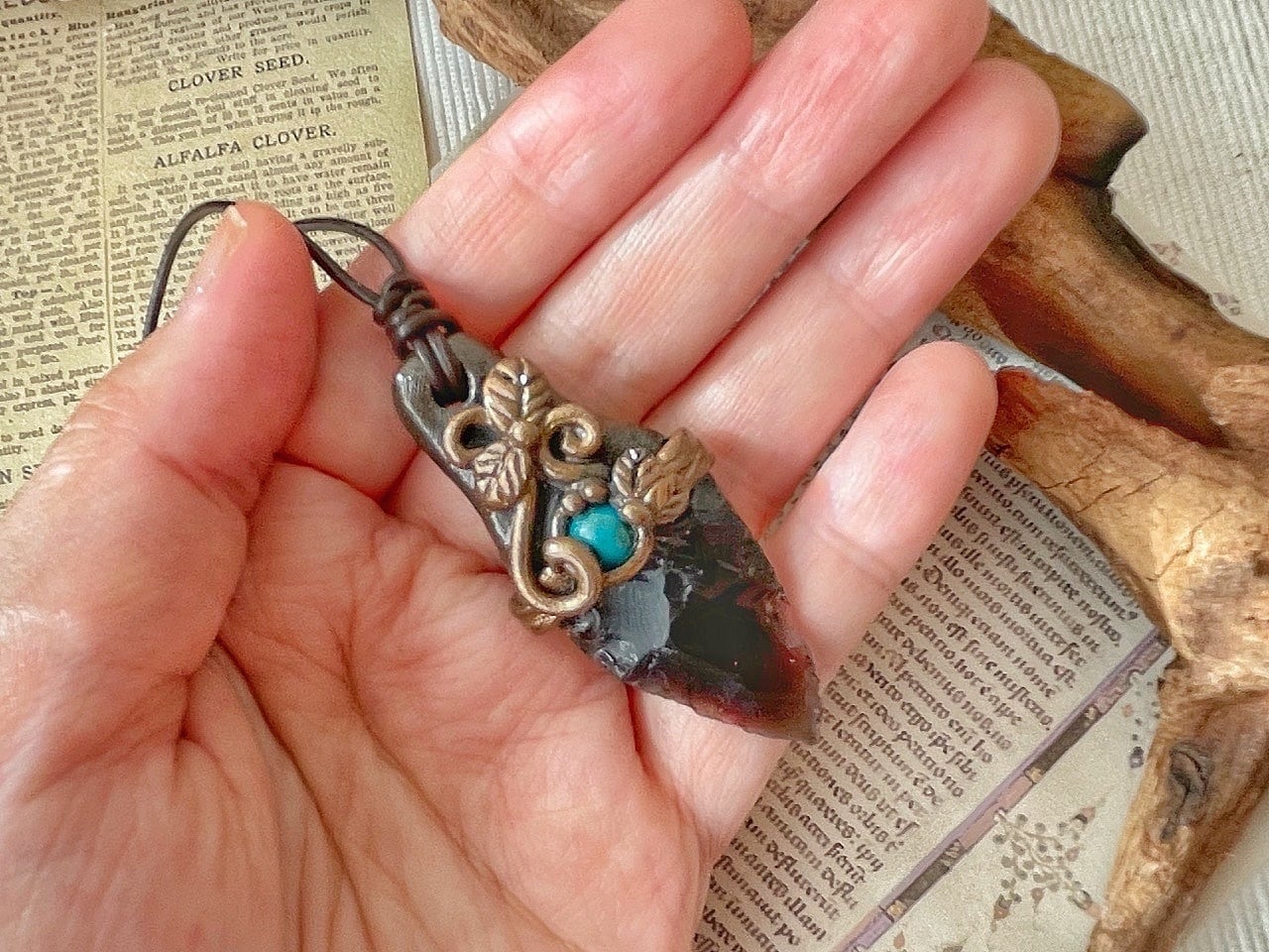 【オブシディアンxクリソコラ】魔封じのナイフペンダント