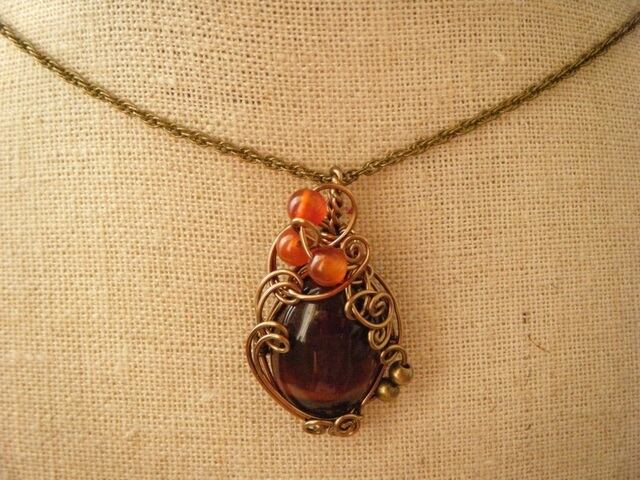 チョコレート色☆レッドタイガーアイのワイヤーペンダント