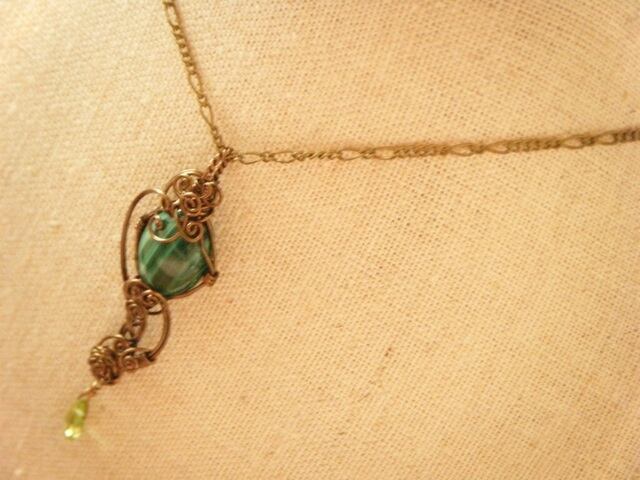 しましま模様のマラカイトを使用したワイヤーペンダントです。