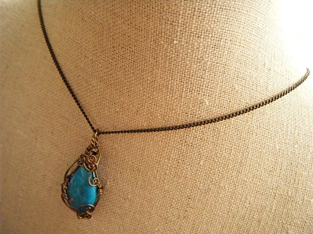 鮮やかブルー☆カッパーターコイズのワイヤーペンダント